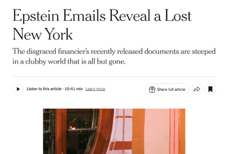 This has been the week of the Epstein files, the impending vote this coming week in Congress. And where does NYTimes bury the Sunday lede on all of this: the Style Section with the word disgraced vs child rapist and lament about how the feel good era of finance is gone.